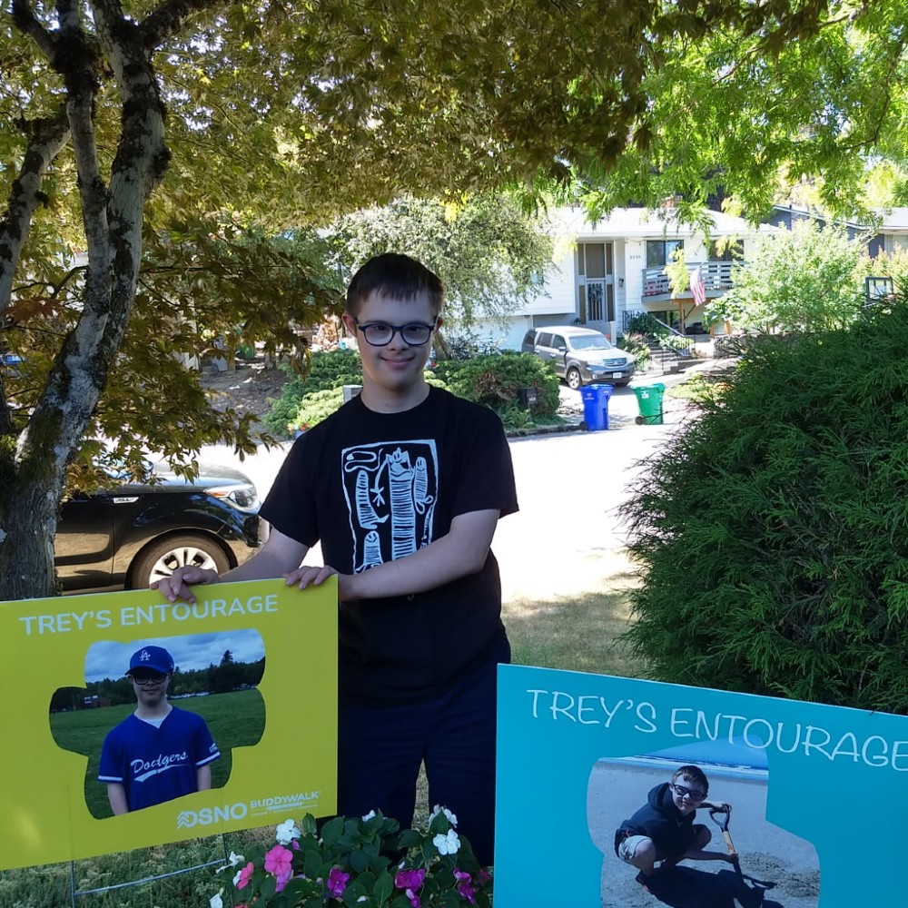 Trey enjoyed another fantastic year of fun with his friends at DSNO. He participated in FIT, Bowling, Dance classes, Pickleball, Swimming, a super fun Halloween party, and the Caroling Bus throughout the year. DSNO knows how to create fun events for this community but they can’t do it without donations to pay for all that fun. Please consider making a donation to Trey’s Buddy Walk team: TREY’S ENTOURAGE. No donation is too small, we appreciate them all! Please consider joining his team on the Buddy Walk, September 14, 2025 at Millennium Plaza Park in Lake Oswego for a fun, inspiring day. We take a group photo before the walk and there is lunch afterwards. Hope to see you there! As always, thank you for supporting Trey!!
