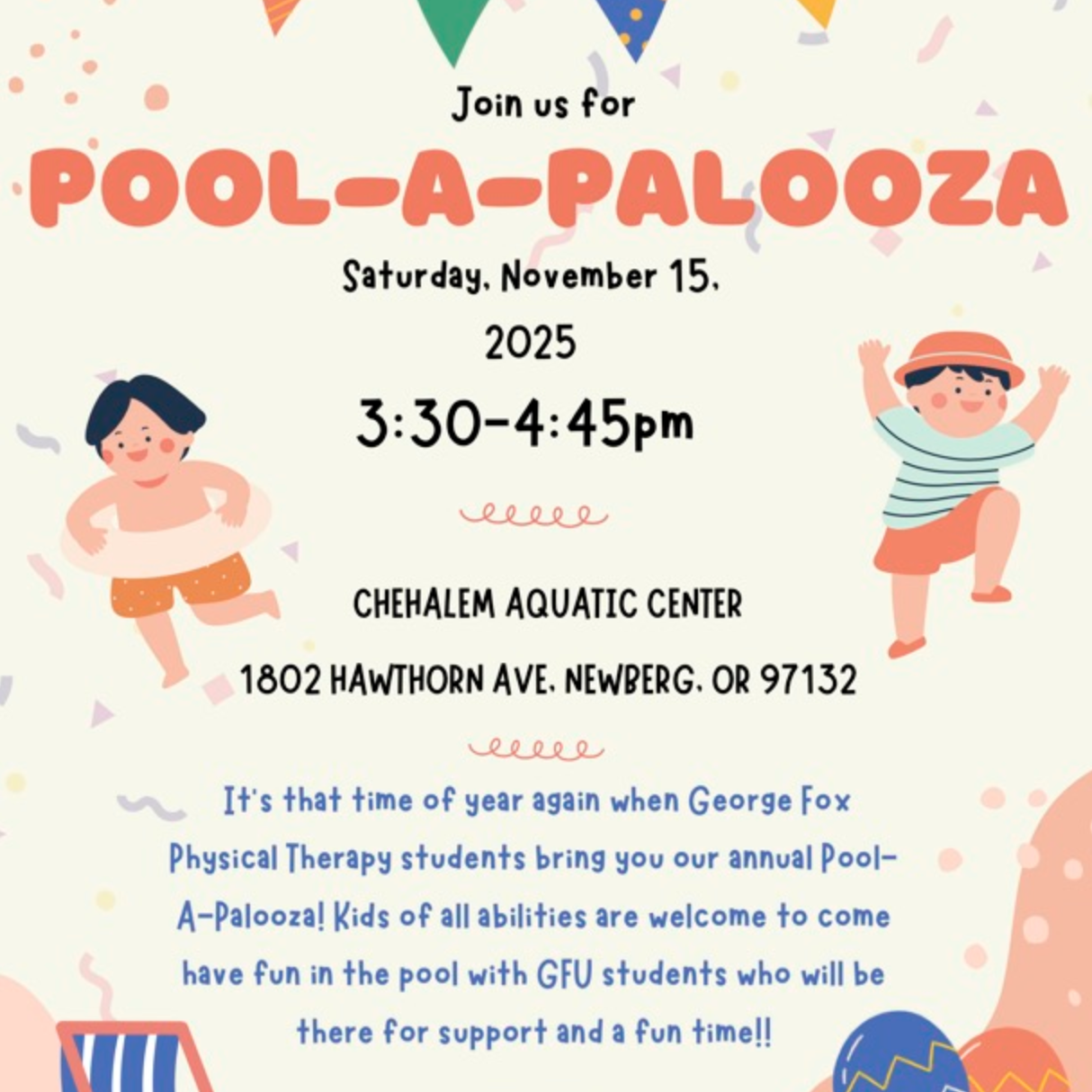 The physical therapy students of George Fox University (GFU) are extremely excited to bring Pool-A-Palooza back to the community this year. It is a time for kids of all ages and abilities to have a big pool party! The GFU students will be in the water to provide support and play alongside your children. DSNO will also be hosting a Young Family Pre-Swim Hangout in a party room at the aquatic center. Free registration details below, and contact Tiffany with questions.